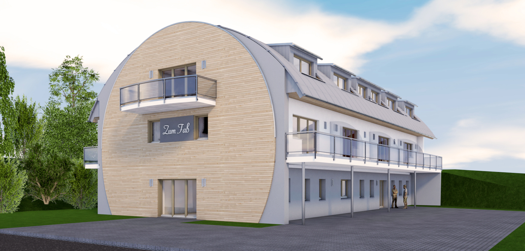 Die ehemalige Gasstätte „Zum Fass“ erhält eine neue Benutzung. Hier entsteht Wohn- und Geschäftsraum. Die e-con GmbH begleitet das Vorhaben in allen technischen Planungsabschnitten.